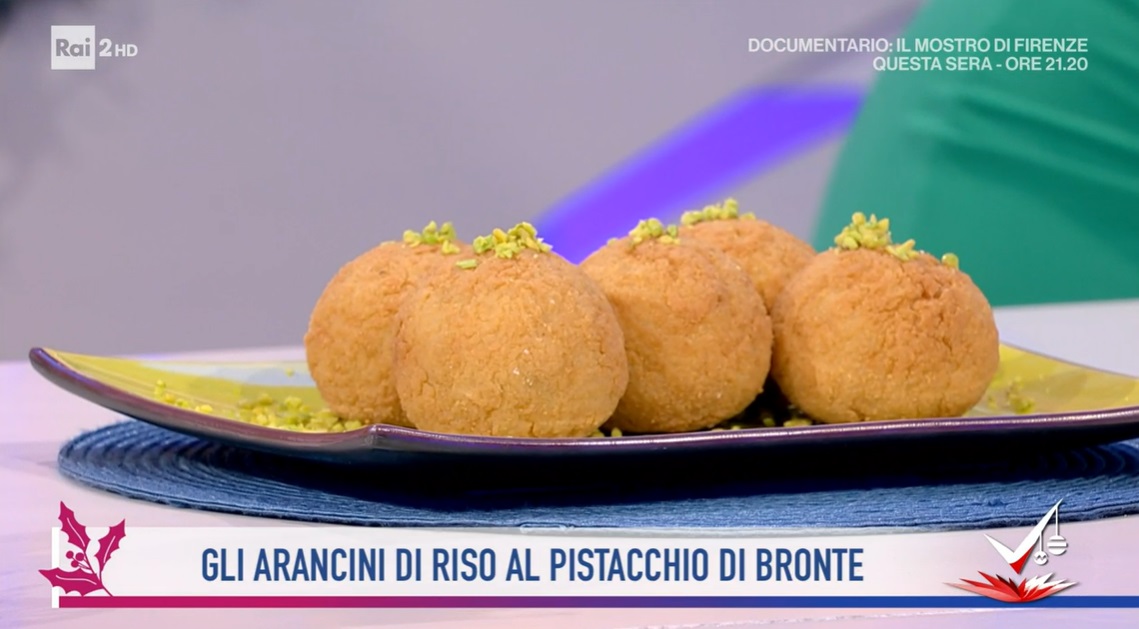 - 500 g riso Carnaroli, 1.2 l brodo vegetale, 70 g burro, 12 g sale, 50 g pistacchio, 30 g ragusano grattugiato, mezza cipolla, olio evo