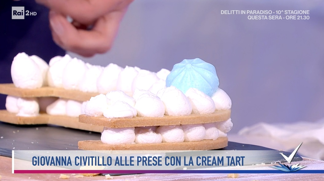 Posizioniamo una forma di frolla sul piatto da portata, quindi creiamo sopra uno strato di crema, a ciuffetti. Posizioniamo sullo strato di crema l’altra forma di frolla e finiamo con un altro strato di crema a ciuffetti. Decoriamo a piacere con caramelle, biscottini, cioccolatini ecc.