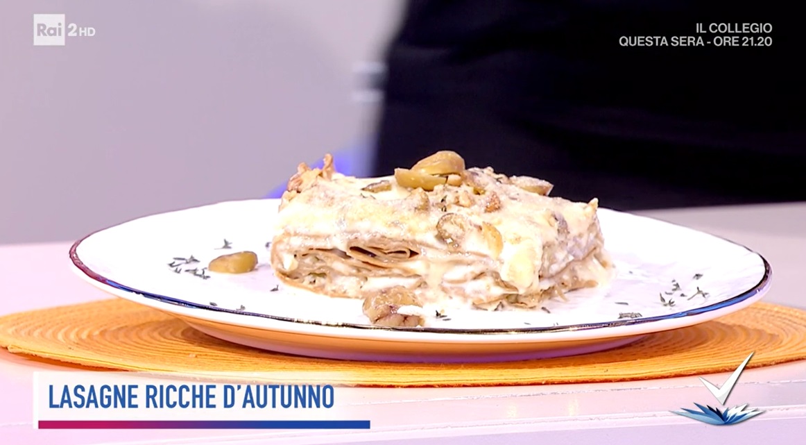Su una pirofila imburrata formiamo un primo strato di lasagne, spalmiamo sopra la besciamella e distribuiamo le castagne lezze a pezzetti, le noci sbriciolate, fiocchi di gorgonzola (o taleggio, brie o stracchino) e parmigiano grattugiato. Ripetiamo gli strati fino ad esaurire gli ingredienti. Cuociamo in forno caldo e statico a 180° per mezz’ora.