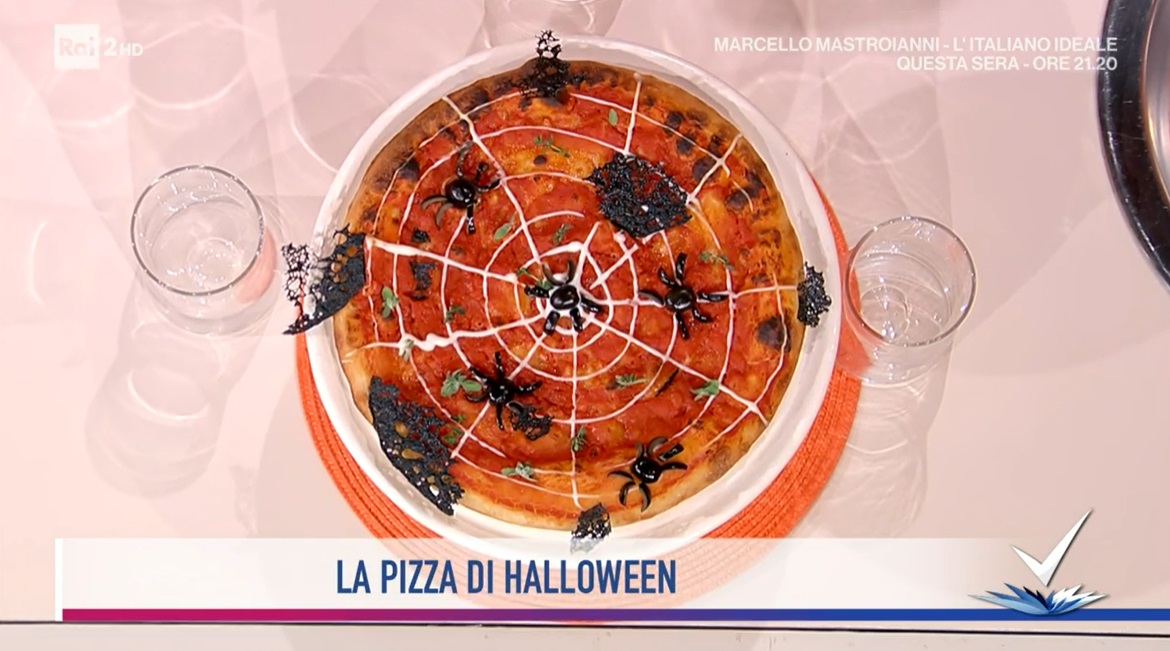 pizza di HalloweenIl tutor Gianfranco Iervolino, protagonista dello spazio dedicato alla cucina, all’interno del programma condotto da Bianca Guaccero su Rai2, Detto Fatto, ha proposto la pizza di Halloween. Di seguito ingredienti e procedimento.