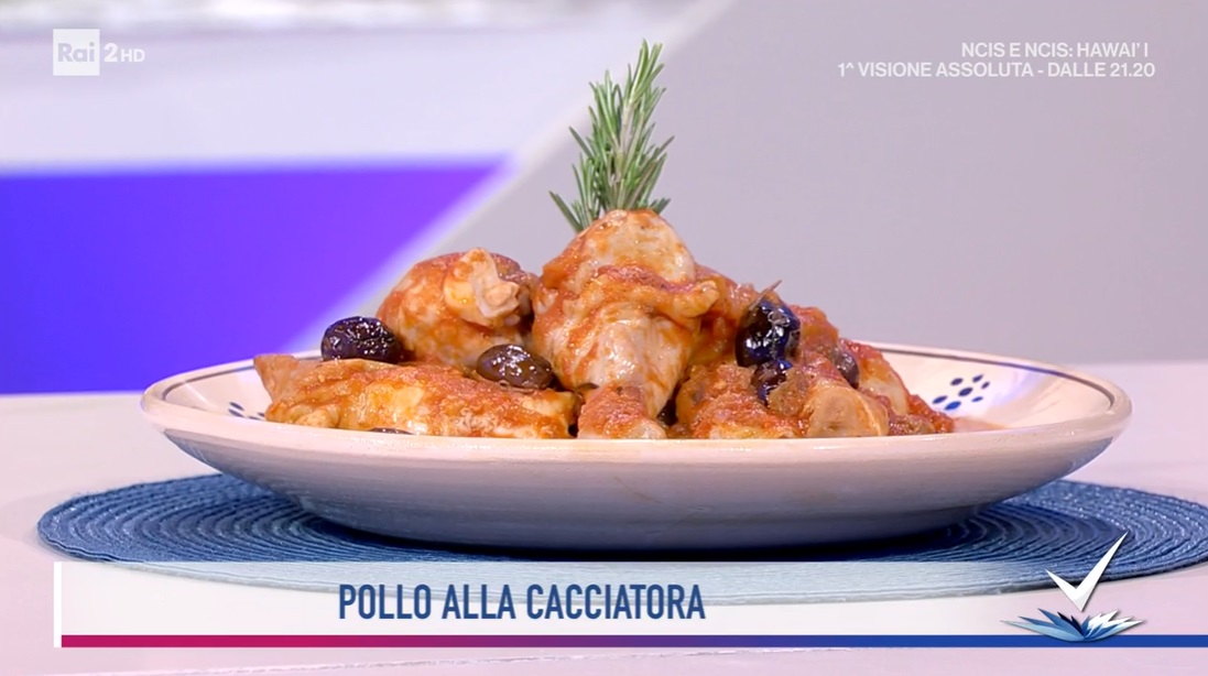 In un tegame, scaldiamo un filo d’olio generoso con un rametto di rosmarino ed uno spicchio d’aglio. Mettiamo a rosolare il pollo a pezzi, a fiamma alta, aggiungendo anche una foglia di alloro. Quando il pollo è ben rosolato, sfumiamo con il vino rosso. Uniamo le cipolle rosse affettate, il sedano a pezzettini e lasciamo insaporire. Uniamo le olive nere infornate, la passata di pomodoro ed i pelati a pezzetti. Lasciamo cuocere per lungo tempo, finchè il pollo risulta ben cotto. A fine cottura, se gradita, aggiungiamo la pasta di peperoncino.