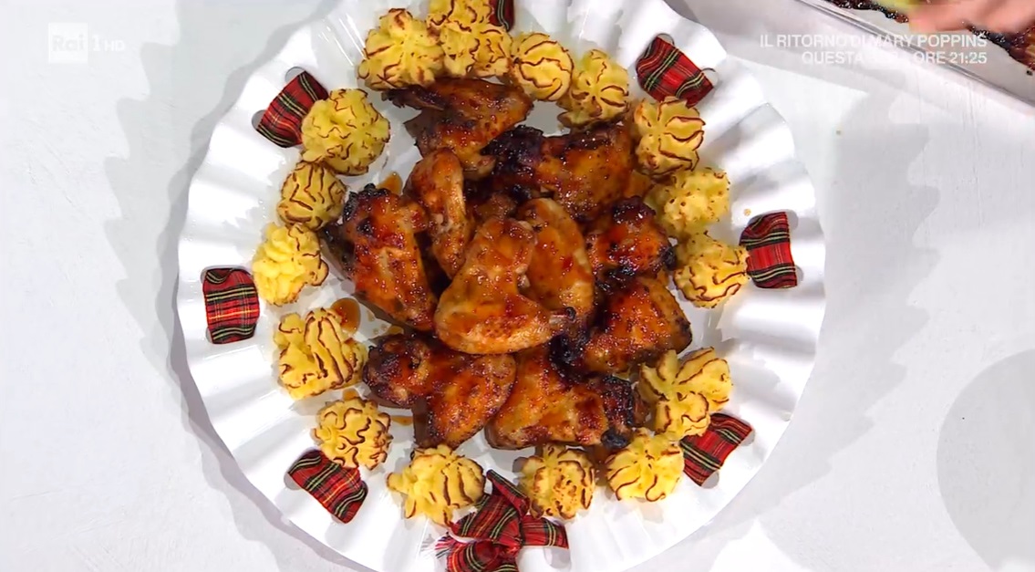 Per il contorno, scaldiamo leggermente il purè avanzato, quindi aggiungiamo i tuorli, i formaggi misti grattugiati ed una spolverata di noce moscata. Mescoliamo il tutto ed inseriamo l’impasto in una sacca da pasticcere con bocchetta rigata. Su una teglia con carta forno, formiamo le nostre patate duchessa: dei ciuffi di impasto. Cuociamo in forno caldo e statico a 250° per 15 minuti.