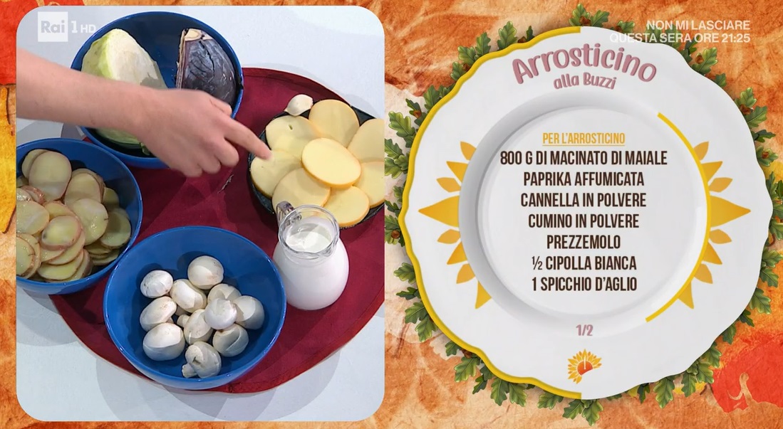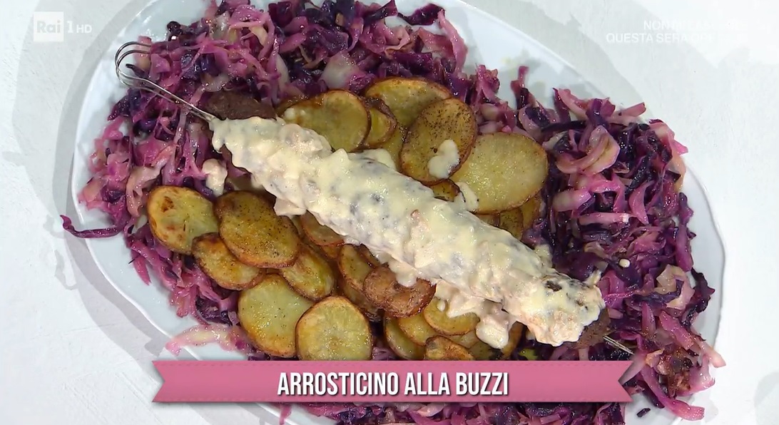 arrosticino alla Buzzi di Simone BuzziSi è allontanato dalle cucine del mezzogiorno per consentire ad Evelina di introdurre il suo percorso di alleggerimento post feste, ma adesso è tornato, più agguerrito con mai, con le sue buzzicate. Simone Buzzi arriva in cucina per proporre uno dei suoi piatti esagerati, un secondo di carne: l’arrosticino alla Buzzi.