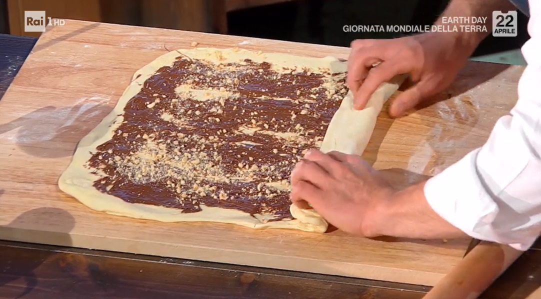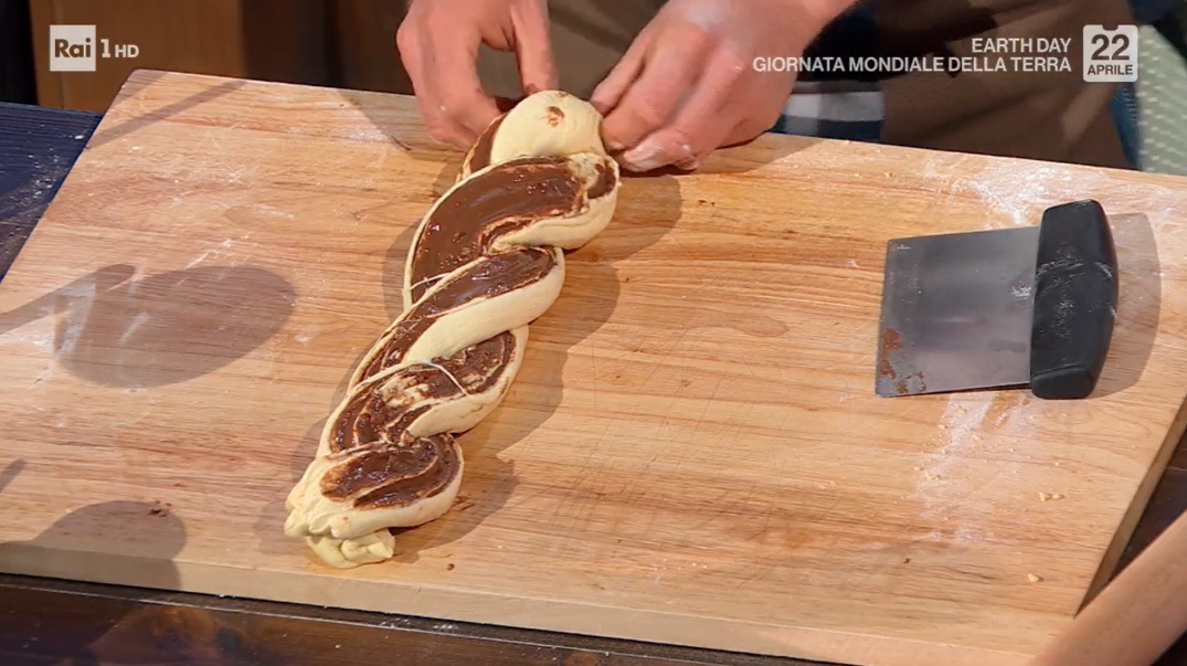 Trasferiamo l’impasto lievitato sul piano infarinato e lo stendiamo con il mattarello, in modo da creare un grande rettangolo spesso circa mezzo cm. Spalmiamo sopra la crema spalmabile alle nocciole (meglio scaldarla leggermente, per renderla maggiormente spalmabile) e spolveriamo con le nocciole tritate. Arrotoliamo l’impasto sul ripieno, partendo dal lato più corto. Otterremo un filone, che tagliamo a metà per il lungo. Intrecciamo le due metà ed inseriamo la treccia ottenuta all’interno di uno stampo da plumcake. Spolveriamo con granella di nocciole, copriamo e lasciamo lievitare fino al raddoppio. Cuociamo in forno caldo e statico a 180° per 40 minuti.