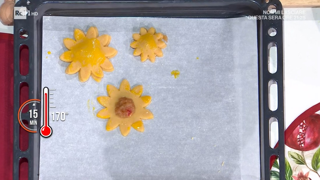 Stendiamo la sfoglia ad uno spessore di 3-4 mm. Ritagliamo le forme preferite e, su ognuna, mettiamo un cucchiaino di ripieno alle mele. Copriamo con un altro biscotto e sigilliamo bene i bordi. Spennelliamo con il tuorlo sbattuto e cuociamo in forno caldo e statico a 170° per 15 minuti.