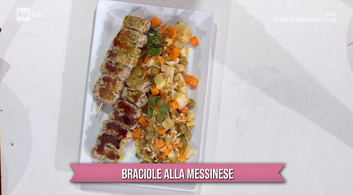 Ungiamo una pirofila con l’olio e disponiamo all’interno le fettine di vitello sottilissime. Le ungiamo con un bel filo d’olio, uniformemente. Prendiamo ogni fettina e la passiamo nella panatura arricchita. Mettiamo su ogni fettina panata una listarella di caciocavallo, quindi arrotoliamo la carne sul formaggio, in modo da ottenere degli involtini. Inseriamo quest’ultimi in uno stecco da spiedino (7 per stecco). Li cuociamo in padella con un filo d’olio: devono dorare sui due lati.