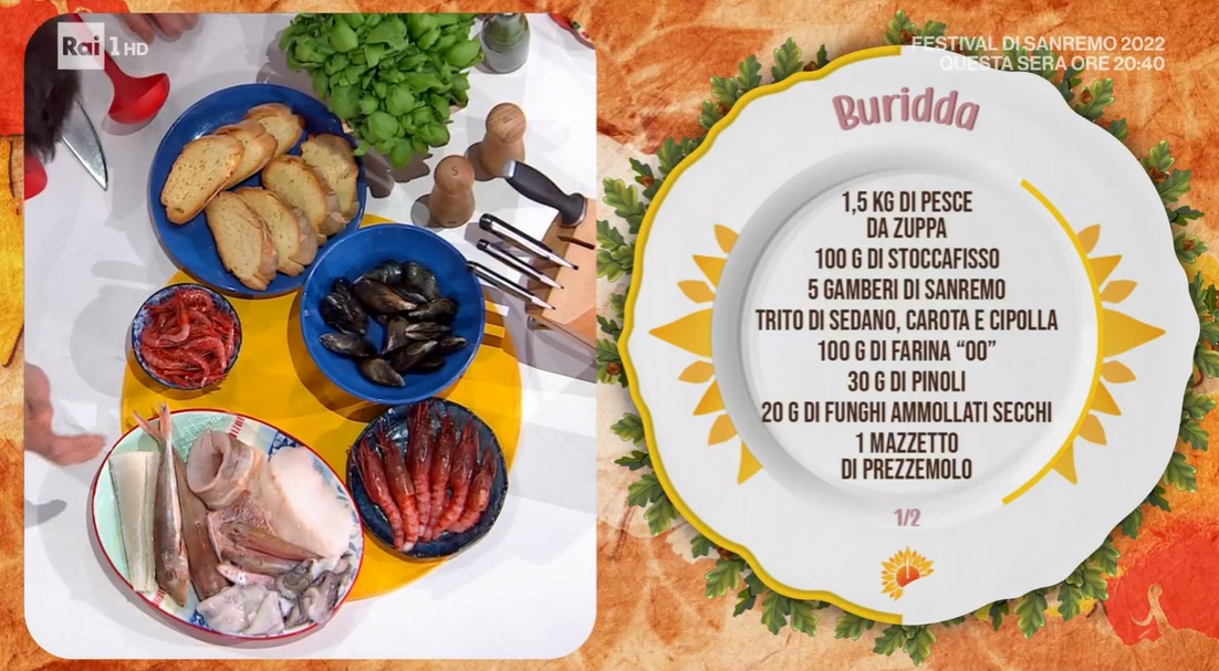 In una padella, facciamo soffriggere i pesce puliti, tagliati a pezzettoni ed infarinati, con olio e burro. Quando i pesci sono dorati su tutti i lati, li uniamo al soffritto di verdure. Uniamo un trito, al coltello, di pinoli, funghi secchi ammollati e acciughe dissalati. Sfumiamo con il vino bianco ed aggiungiamo i pomodori freschi a pezzettoni (o della passata), peperoncino e copriamo con il brodo di pesce. Copriamo e lasciamo cuocere per circa 30-40 minuti.