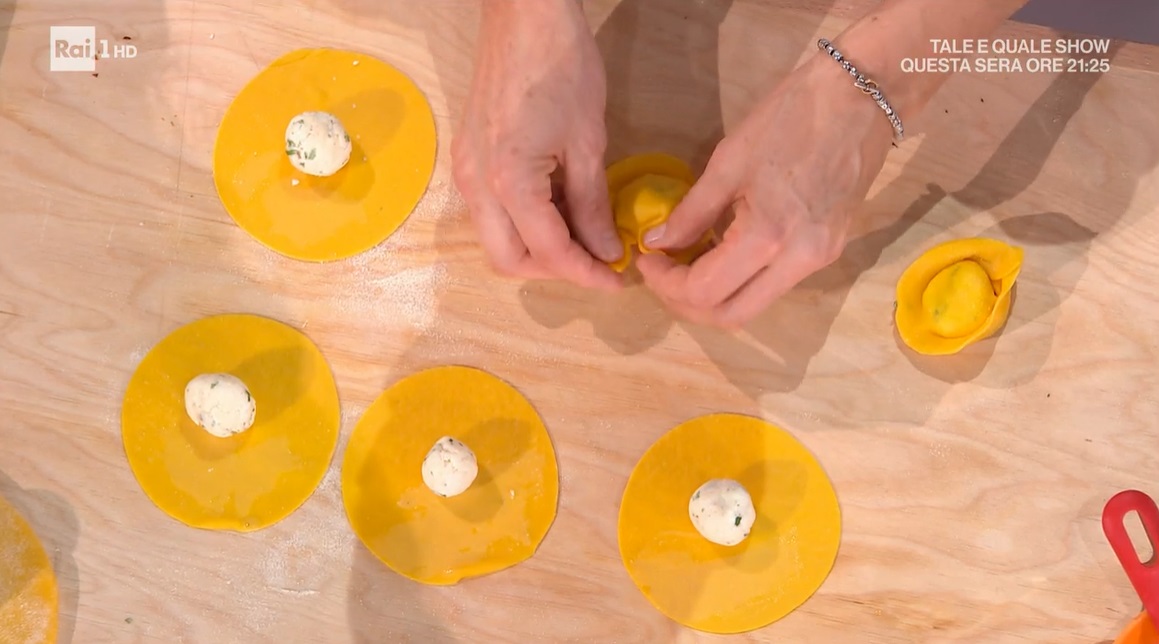 Ritagliamo dei dischi del diametro di almeno 8 cm dalla sfoglia. Su ogni dischetto mettiamo una noce di ripieno. Richiudiamo a mezzaluna, quindi diamo la forma del cappello (foto). Cuociamo in acqua bollente e salata per un paio di minuti.