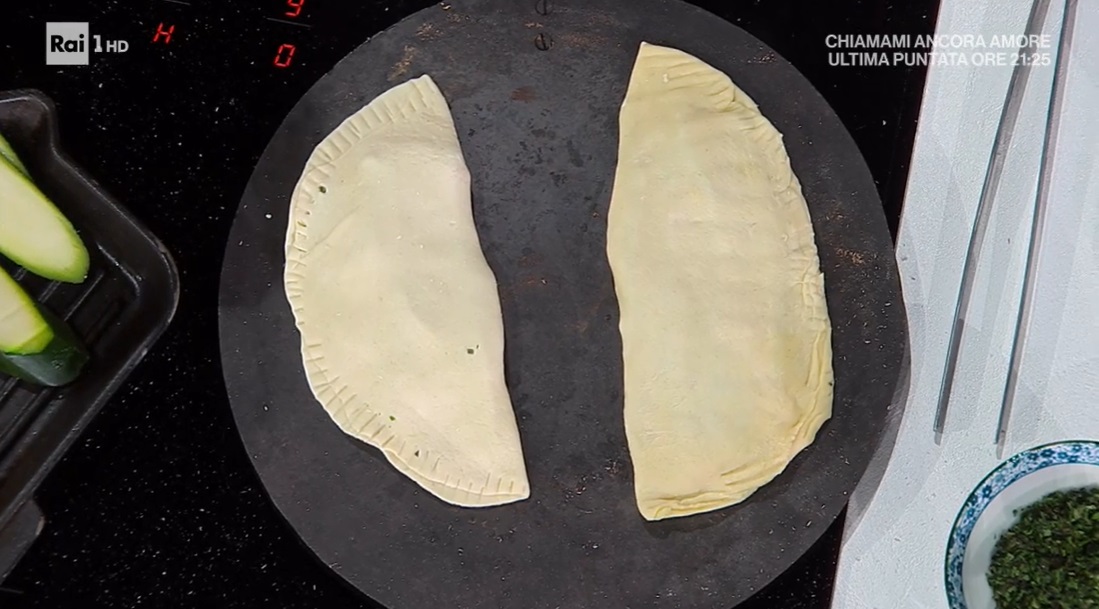 Stendiamo ogni panetto, in modo da ottenere dei dischetti sottili. Li farciamo con le patate lesse e schiacciate, le zucchine grigliate e la scamorza a fette. Richiudiamo il disco sul ripieno, a mezzaluna, e sigilliamo i bordi con una forchetta. Mettiamo a cuocere sul testo ben caldo o su una padella antiaderente, fino a doratura uniforme su tutti i lati.