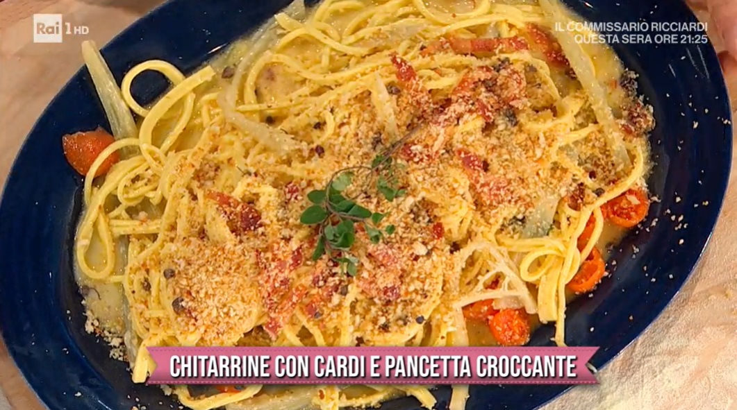 L’articolo “É sempre mezzogiorno”: chitarrine con cardi e pancetta croccante di Antonella Ricci proviene da Ricette in Tv.