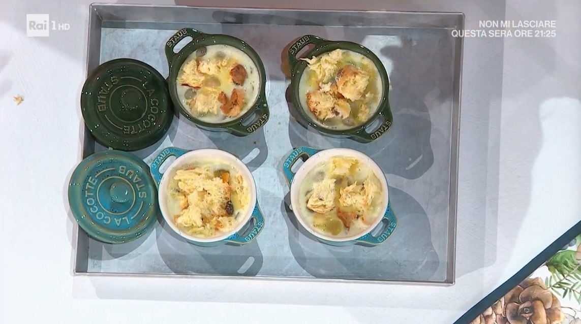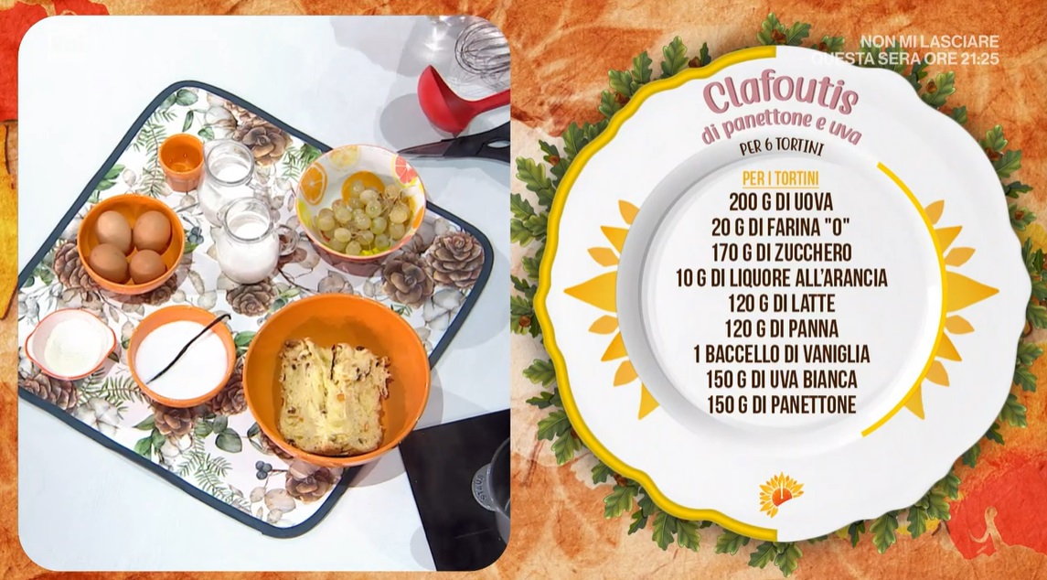 clafoutis di panettone e uva di Francesca MarsettiFrancesca Marsetti non vuole ancora sentirne di smettere di festeggiare e, utilizzando il panettone avanzato, prepara un dolce del recupero, golosissimo. Ecco il clafoutis di panettone e uva.