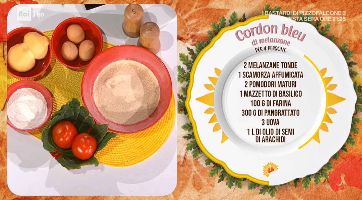cordon bleu di melanzane di zia CriCon un ritardo importante, dovuto alla diretta del Tg1 dal Quirinale, Antonella riapre le cucine di Rai1 per suggerirci, insieme alla fidata zia Cri, idee golose ed originali per un pranzo o una cena dell’ultimo minuto. Oggi, in particolare, un cordon bleu vegetariano, un cordon bleu di melanzane.