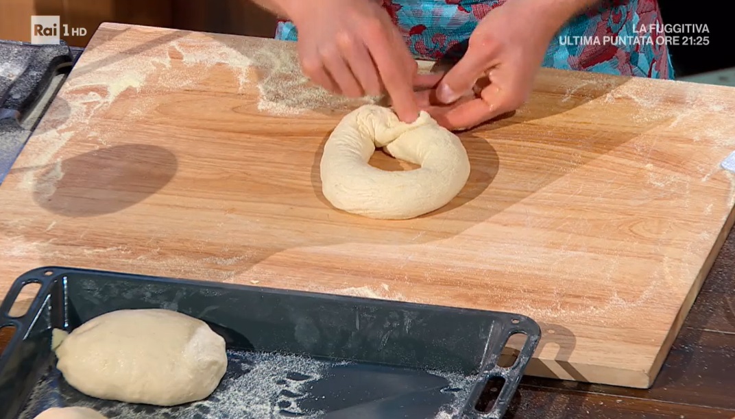 Con ogni panetto lievitato, formiamo un filone spesso e lo richiudiamo a ciambella, congiungendo le due estremità. Disponiamo le ciambelle ottenute sulla teglia. Copriamo e lasciamo lievitare 40 minuti. Cuociamo in forno caldo e statico a 250° per 25 minuti. In questo modo otterremo un ottimo pane.