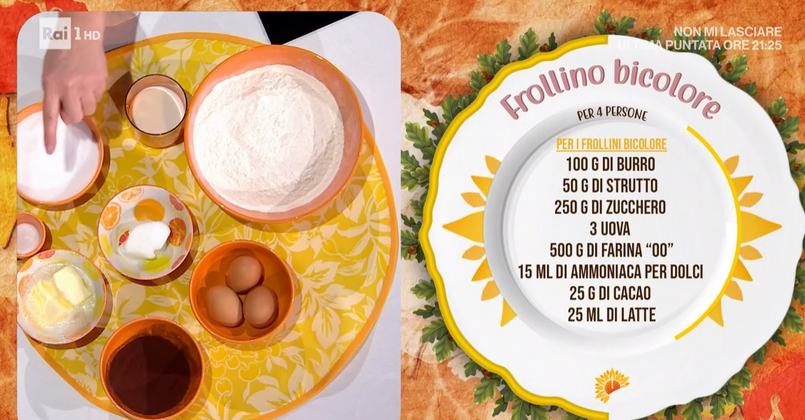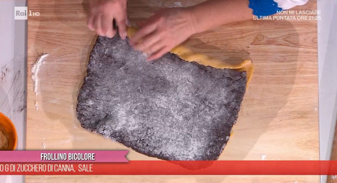 A parte, mescoliamo il cacao con pari peso di latte. Dividiamo l’impasto bianco in due parti e, ad una metà, aggiungiamo il cacao diluito nel latte. Lavoriamo fino ad ottenere un impasto omogeneo. Mettiamo i due impasti, chiaro e scuro, in frigorifero per almeno mezz’ora.