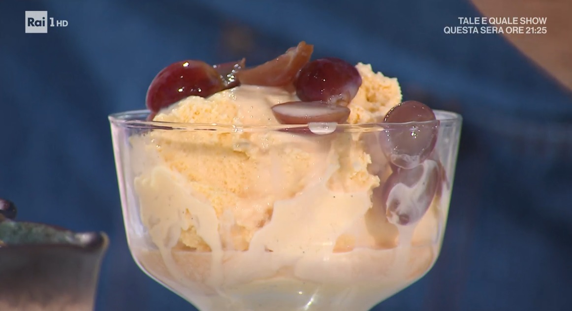 Serviamo il gelato con sopra l’uva macerata nel rum.