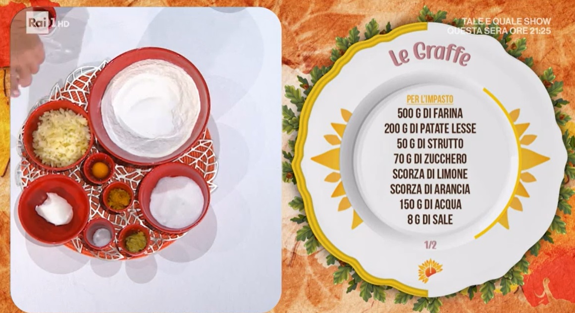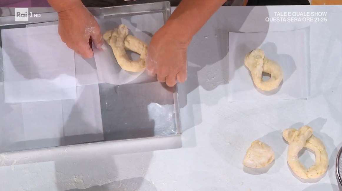 - 500 g farina, 200 g patate lesse, 50 g strutto, 70 g zucchero, scorza di limone e arancia, 150 g acqua, 8 g sale, 10 g lievito di birra, 1 uovo, olio di semi