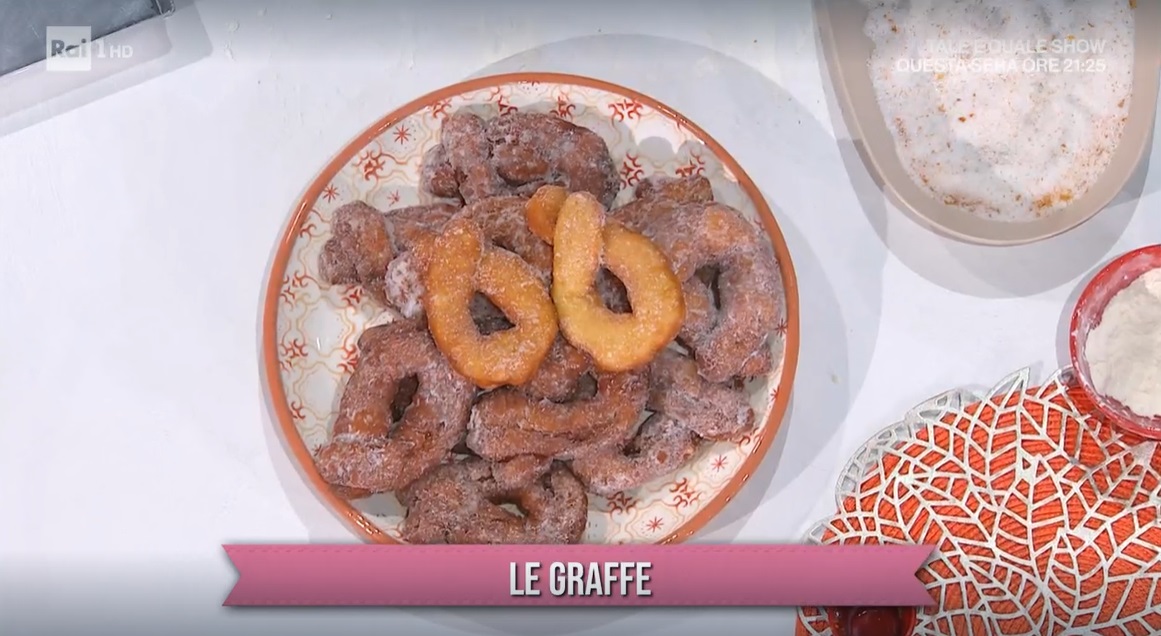 Le tuffiamo in olio caldo e profondo con il quadrato di carta forno. Lasciamo friggere fino a doratura (eliminiamo la carta, appena si stacca dalla graffa). Scoliamo su carta assorbente e, quando sono ancora calde, le passiamo nello zucchero aromatizzato con la scorza d’arancia in polvere o grattugiata.