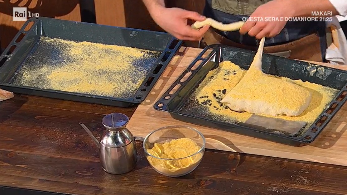 Spolveriamo la teglia con abbondante farina di mais, trasferiamo sopra l’impasto e lo allarghiamo leggermente a formare un rettangolo. Spolveriamo con abbondante farina di mais. Tagliamo il rettangolo preparato a fettine ed allunghiamo ogni fettina tra le mani, tirando alle estremità, in modo da formare i grissini. Li disponiamo su una teglia infarinata con la farina di mais. Lasciamo riposare, senza coprire, per 30 minuti. Cuociamo in forno caldo per 20 minuti a 180°, statico; oppure, 170°, 20 minuti, forno ventilato. Se, all’uscita dal forno, non sono abbastanza secchi, proseguiamo la cottura.
