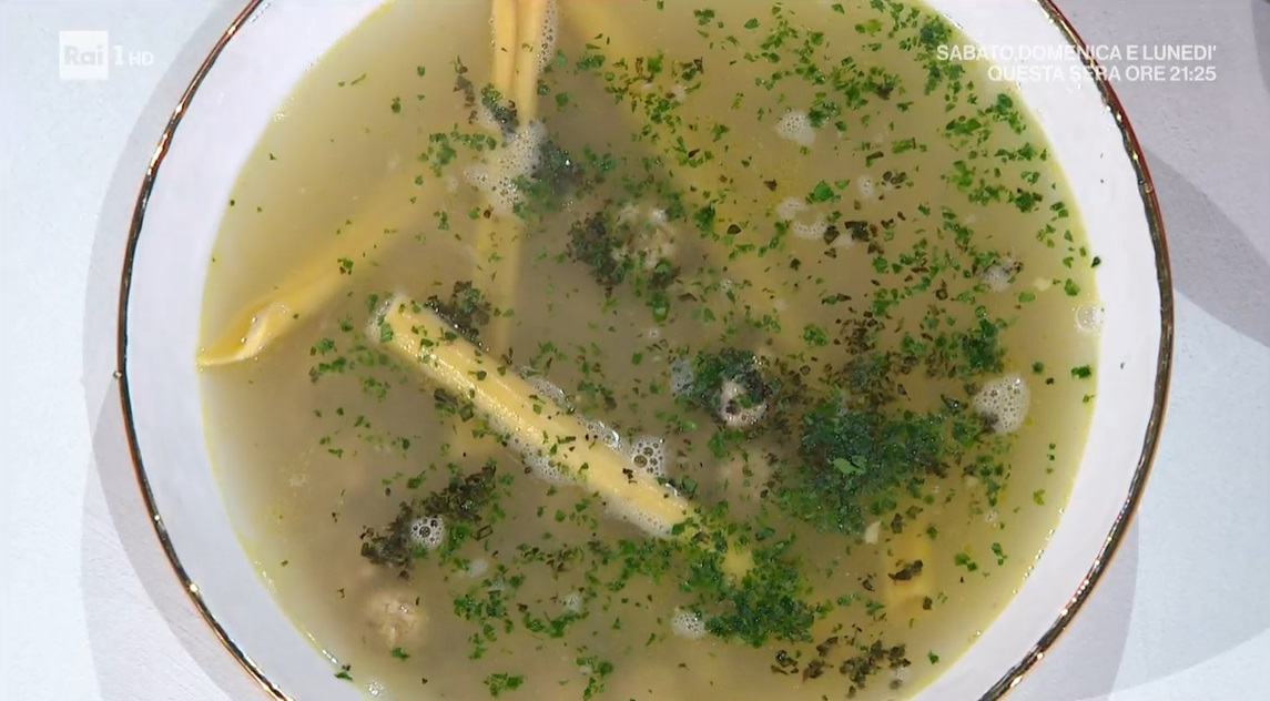 Quando il brodo è pronto, scoliamo la carne e filtriamo il brodo. Nel brodo a bollore, facciamo cuocere i natalin (ovvero, degli spaghettoni tipici di Genova, simili agli ziti).