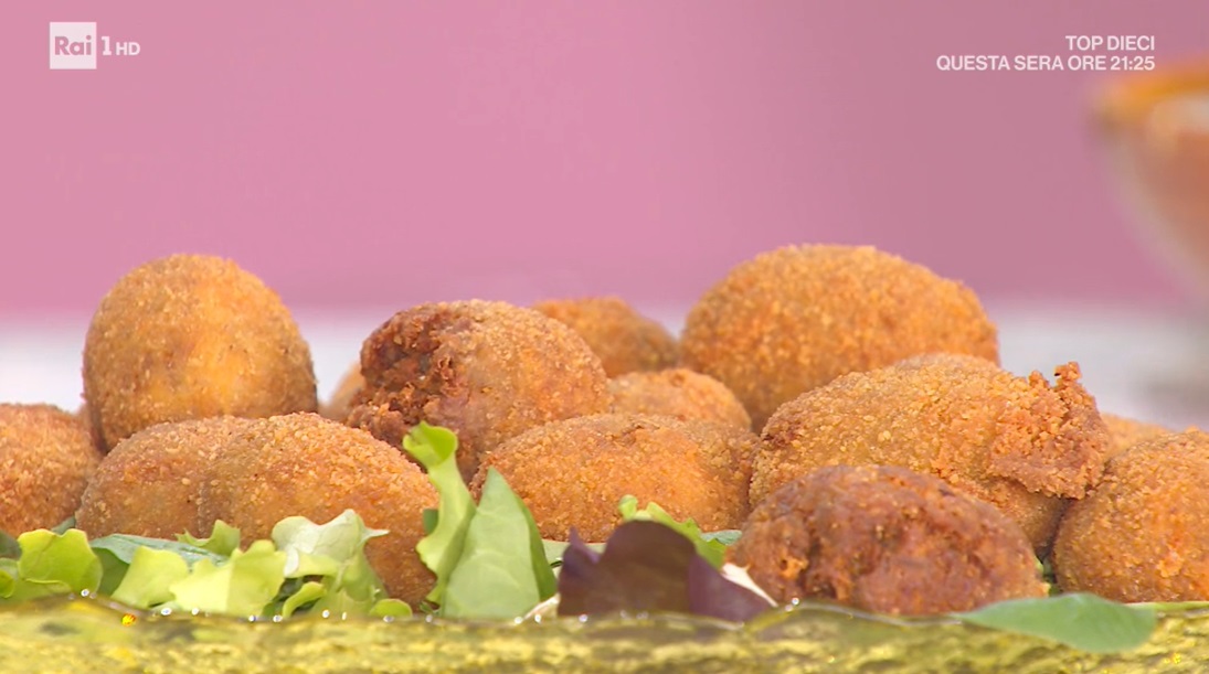 Con l’impasto ottenuto, formiamo delle polpettine, dando la forma di olive grosse (circa 25 g). Le passiamo nella farina, successivamente nell’uovo sbattuto e infine nel pangrattato. A questo punto, possiamo congelarle o friggerle in olio caldo e profondo fino a doratura.