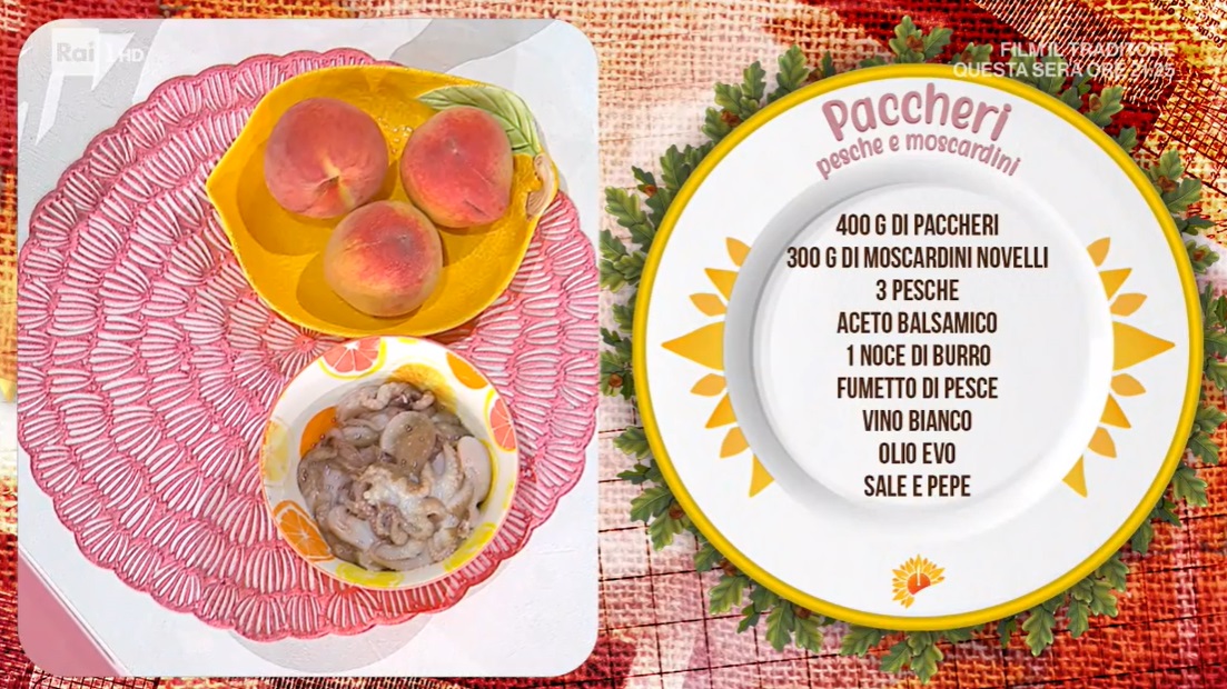 L’articolo “É sempre mezzogiorno”: paccheri pesche e moscardini di Ivano Ricchebono proviene da Ricette in Tv.