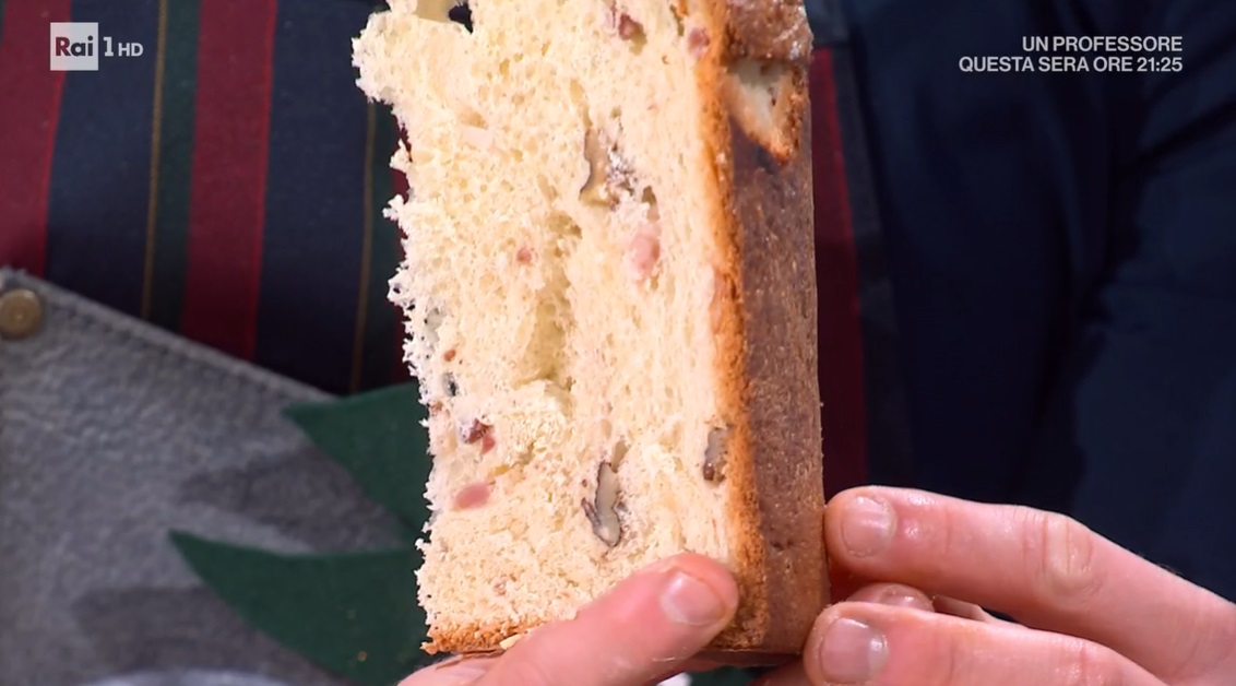 In una ciotola, o in planetaria, mettiamo la farina 0 forte, le uova sbattute, il lievito madre, quello di birra fresco sbriciolato (ne mettiamo 25 g nel caso non avessimo il lievito madre), gran parte dell’acqua e lo zucchero. Mescoliamo con un cucchiaio e, ad impasto formato, inseriamo il sale e l’acqua rimasta. Lavoriamo per qualche minuto, fino ad ottenere un impasto liscio ed elastico. Aggiungiamo il burro morbido a pezzetti, poco alla volta, continuando a lavorare in modo da far assorbire il burro all’impasto. Infine, incorporiamo le noci sbriciolate ed il pecorino e lo speck a dadini. Lavoriamo fino a distribuire gli ingredienti uniformemente. Copriamo e lasciamo lievitare per 12 ore in frigorifero.