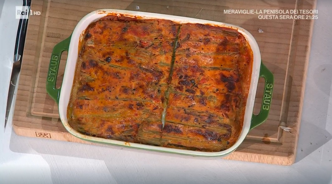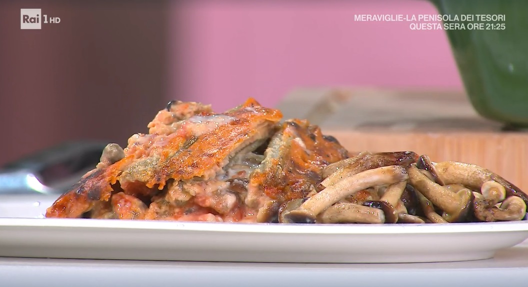 Ungiamo una pirofila e spalmiamo sul fondo un po’ di besciamella e di sugo di pomodoro. Formiamo sopra uno strato di cardi bolliti, quindi distribuiamo sopra un po’ di funghi spadellati, della scamorza affumicata a fette, del parmigiano grattugiato, origano, ancora della besciamella e del sugo. Ripetiamo gli strati: cardi, funghi, scamorza, parmigiano, besciamella e sugo. Finiamo con uno strato di cardi.