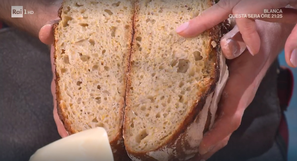 - 250 g farina di mais, 750 g farina tipo 2, 300 g lievito madre, 300 g patate lesse, 500 g acqua, 22 g sale