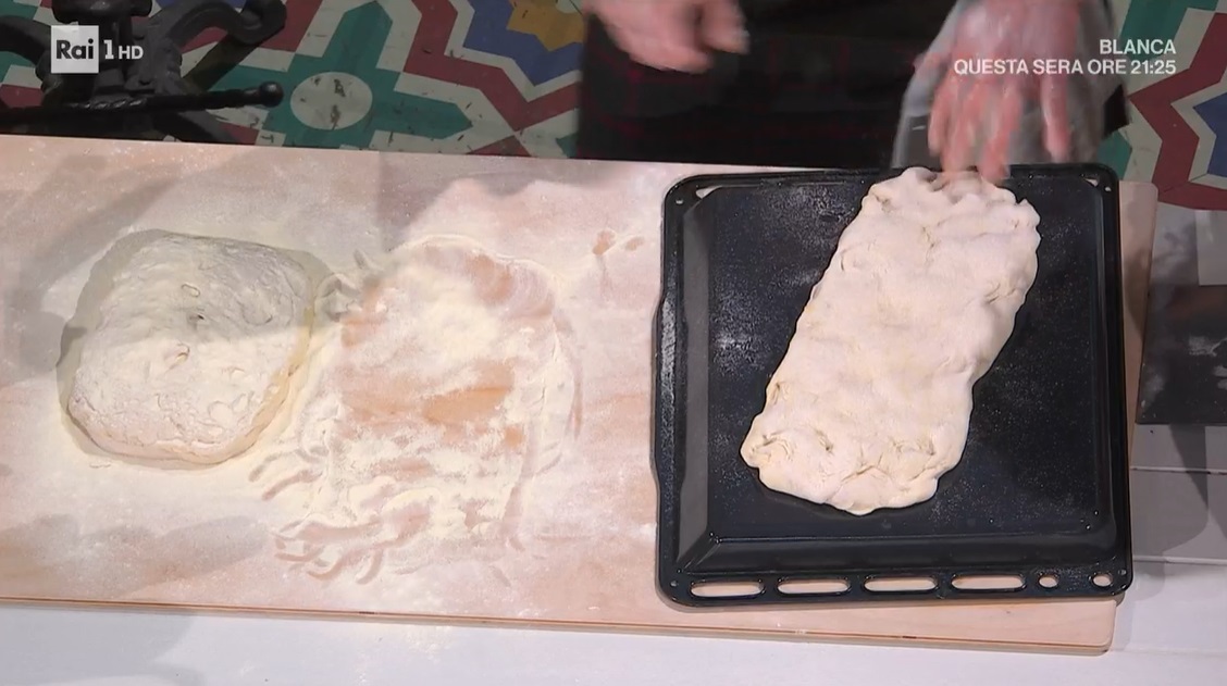 Formiamo dei panetti da 300 g, che ripieghiamo su loro stessi (lembi esterni verso l’interno). Li disponiamo su una teglia con carta forno, copriamo con pellicola e lasciamo lievitare per 4 ore a temperatura ambiente.