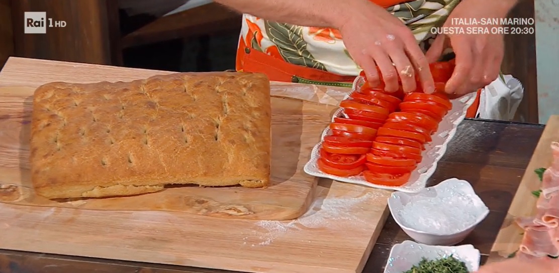Capovolgiamo l’impasto su una teglia abbondantemente unta d’olio e lo allarghiamo con le dita, fino a riempire la teglia. Copriamo e lasciamo lievitare ancora 2 ore a temperatura ambiente. Mettiamo in fino a 250° per 15 minuti, parte bassa del forno.