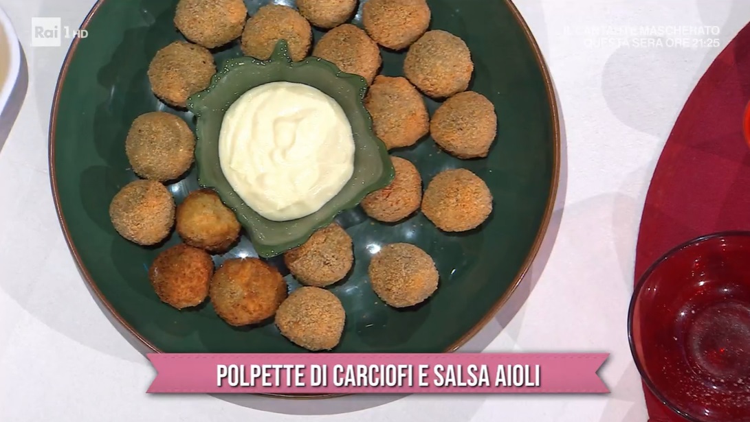 Per le polpette, puliamo i carciofi, li tagliamo a fettine e li spadelliamo con olio ed aglio. Una volta cotti, li tritiamo al coltello.