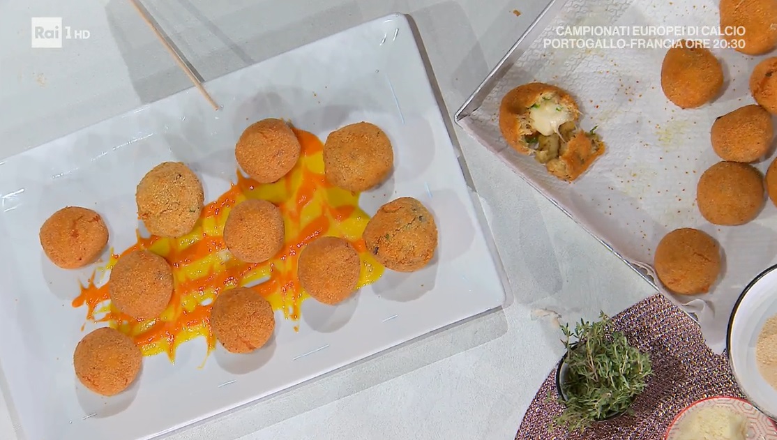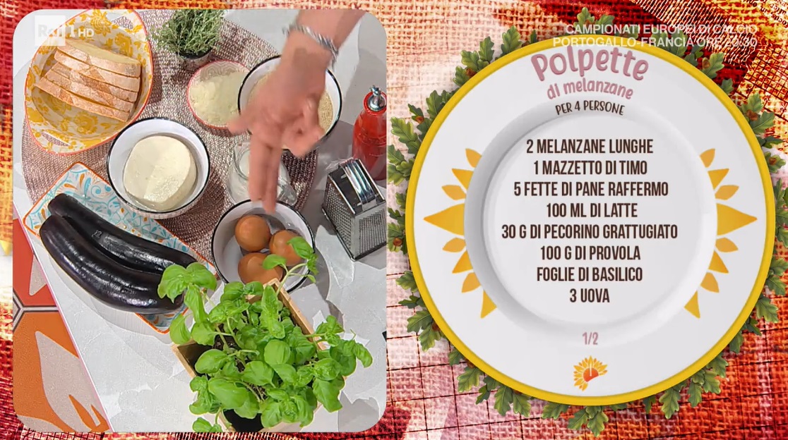 polpette di melanzane di Mauro e Mattia ImprotaUltimo mercoledì in cucina, almeno su Rai1, per Mauro e Mattia Improta, che si preparano ad affrontare una calda, caldissima estate ai fornelli del loro ristorante partenopeo. I due, per salutare il pubblico, si accompagnano a mamma Improta, che assiste dagli spalti alla preparazione delle polpette di melanzane.