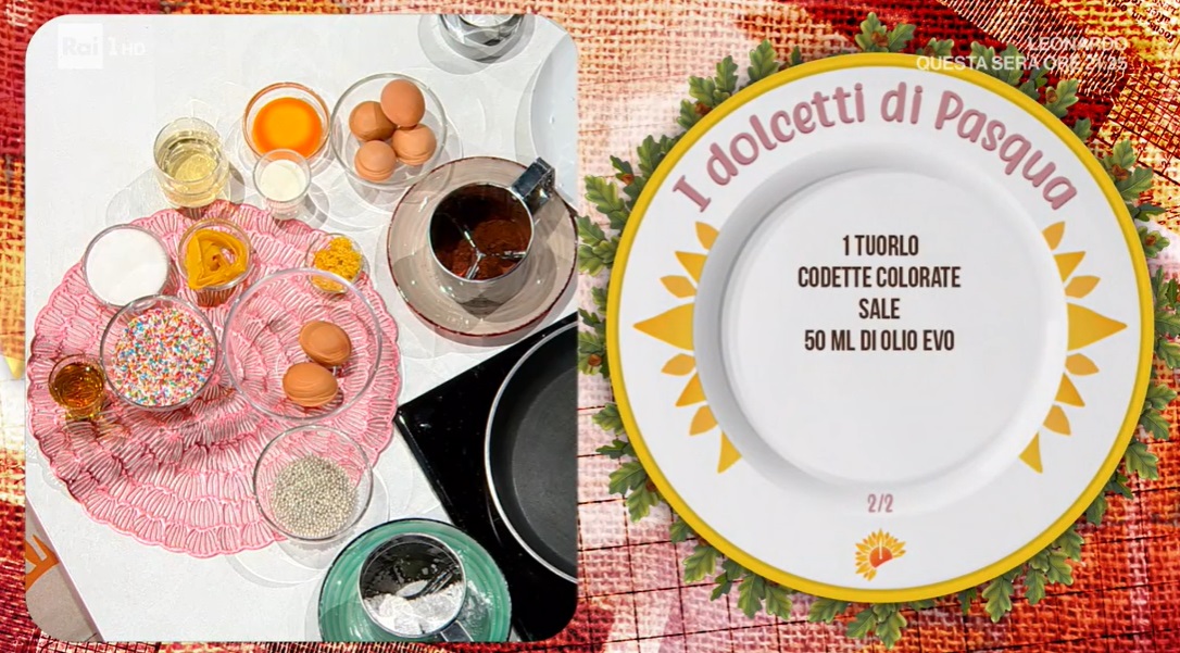 Stendiamo la frolla ad uno spessore di mezzo cm. Ricaviamo dei dischi o altre forme a piacere. Al centro di ogni forma posizioniamo un uovo sodo, che ‘chiudiamo in una gabbia’ formata con strisce o cordoncini di frolla. Spennelliamo con il tuorlo sbattuto, spolveriamo con le codette colorate e cuociamo in forno caldo e statico a 180° per 15 minuti o fino a doratura.