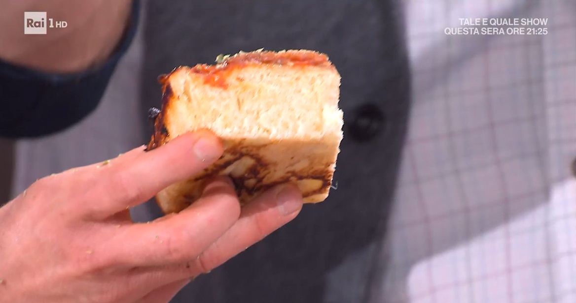 - passata di pomodoro, cipolla bianca, acciughe sott’olio, caciocavallo a pezzetti, caciocavallo grattugiato, pangrattato, origano, olio evo