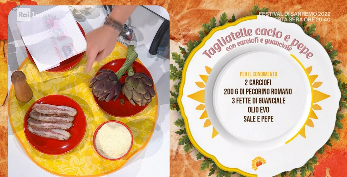 In padella, mettiamo a rosolare il guanciale a listarelle, senza aggiungere altro. Nel frattempo, puliamo i carciofi e li tagliamo a fettine. Togliamo il guanciale ben rosolato dalla padella, quindi mettiamo a cuocere i carciofi con il grasso del guanciale.