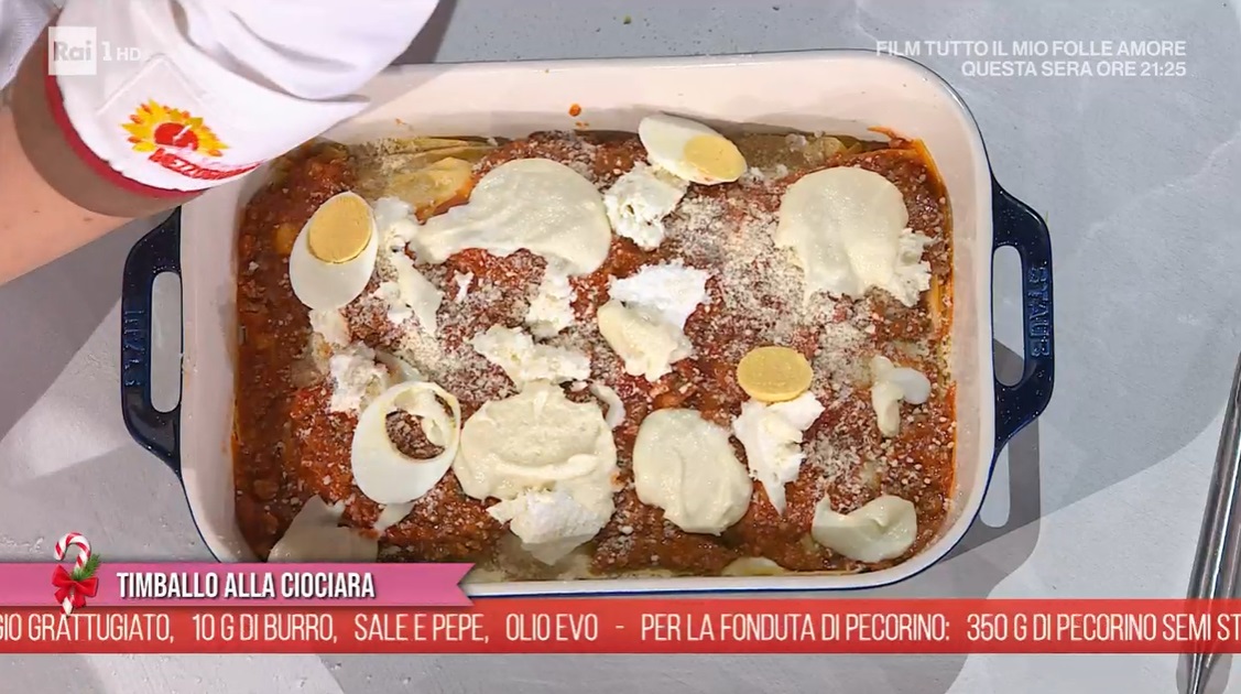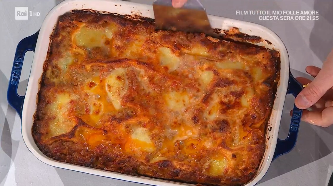 Tiriamo la sfoglia sottilmente, con la sfogliatrice. Spalmiamo la base di una pirofila con la fonduta di pecorino e un po’ di ragù. Adagiamo sopra delle sfoglie di pasta fresca (non va precotta), spalmiamo sopra altra fonduta e ragù, distribuiamo sopra la mozzarella a fette e le uova sode a fettine, spolveriamo con il parmigiano grattugiato e ripetiamo gli strati: pasta, fondut, ragù, uova, mozzarella a formaggio grattugiato. Finiamo con ragù, mozzarella, formaggio grattugiato e fonduta di pecorino. Mettiamo in forno caldo e statico a 180° per 30 minuti; sforniamo, spolveriamo con scaglie di pecorino e distribuiamo sopra fiocchetti di burro, rimettiamo in forno, funzione grill, per 10 minuti.