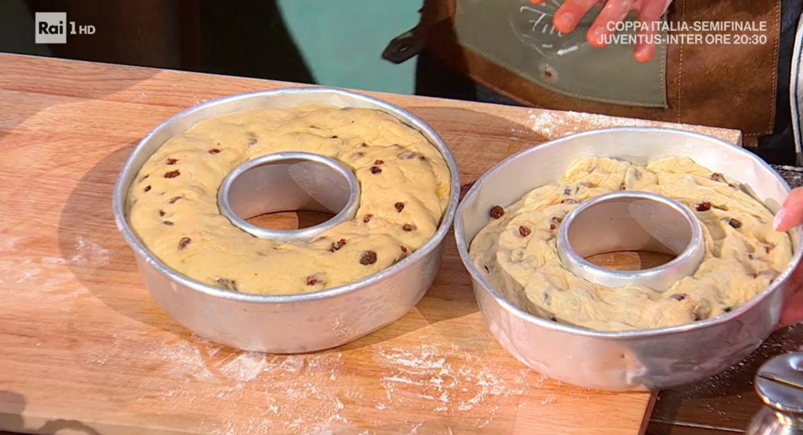 Nell’impastatrice, mettiamo la farina tipo 0 forte, il lievito madre (o solo 15 g di lievito di birra), lo zucchero, l’acqua e cominciamo ad impastare con il gancio, a velocità bassa. Aggiungiamo le uova, una per volta, continuando ad impastare. La fase dell’impasto richiederà tra i 20 ed i 30 minuti. Incorporate le uova, inseriamo il lievito di birra fresco sbriciolato. Impastiamo qualche minuto, quindi inseriamo il sale e lavoriamo ancora. Quando l’impasto è omogeneo, inseriamo il burro a pomata, poco per volta, continuando ad impastare. Alla fine, incorporiamo l’uvetta e lavoriamo fino a distribuirla uniformemente.