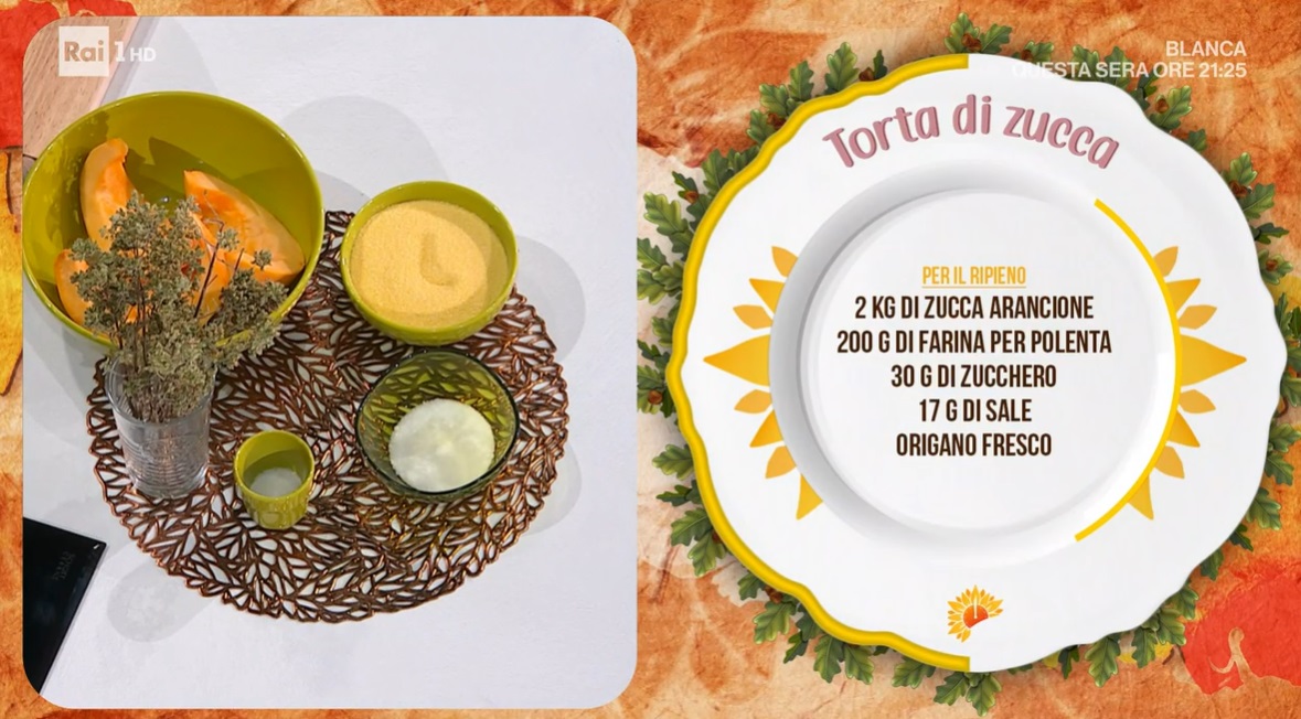 - 2 kg zucca arancione, 200 g farina di polenta, 30 g zucchero, 17 g sale, origano