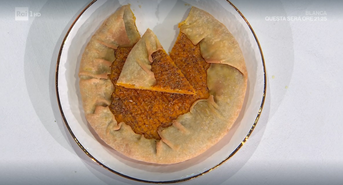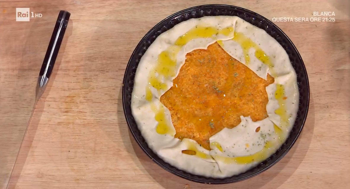 Stendiamo la pasta matta con matterello, in modo da ottenere un disco sottile. Lo posizioniamo su una tortiera da crostata ben unta d’olio, in modo da coprire la base ed i bordi. Distribuiamo sulla sfoglia il ripieno di zucca e lo livelliamo. Ripieghiamo l’eccesso di sfoglia sul ripieno e spolveriamo con l’origano. Un filo d’olio in superficie e cuociamo in forno caldo e statico a 180° per 45 minuti.