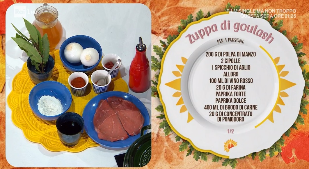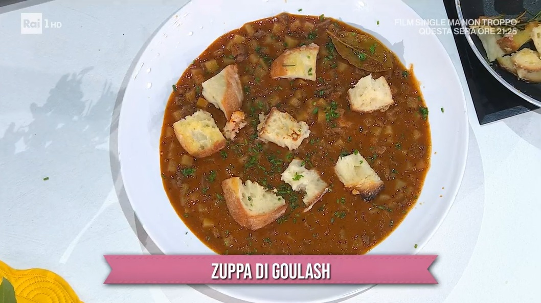zuppa di goulash di Barbara De NigrisDal lago di Carezza, al bosco fatato di Antonella, Barbara De Nigris arriva in cucina per preparare un secondo piatto amatissimo nell’est Europa, oltre che sulle montagne del Nord Italia. Vediamo come preparare la zuppa di goulash.