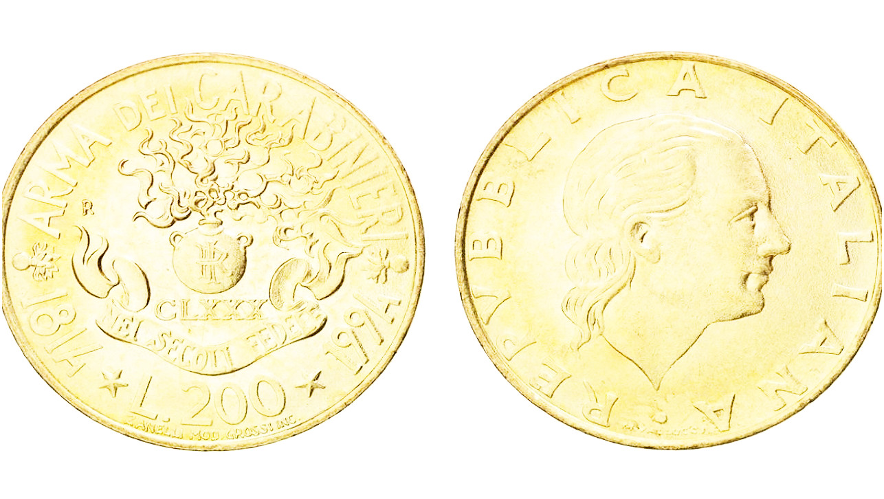 Realizzata esclusivamente nel 1994, la moneta da 200 lire dell’Arma dei Carabinieri è stata coniata in un’enorme quantità: ben 200.000.000 di pezzi. Questo ha reso la moneta estremamente comune e, di conseguenza, il suo valore sul mercato è piuttosto limitato. In condizioni usurate, graffiate o danneggiate, il valore di questa moneta è quasi nullo. Tuttavia, possedere un esemplare in Fior di Conio potrebbe fruttare un paio di euro, rendendola, per i collezionisti, un pezzo interessante sebbene non particolarmente redditizio.