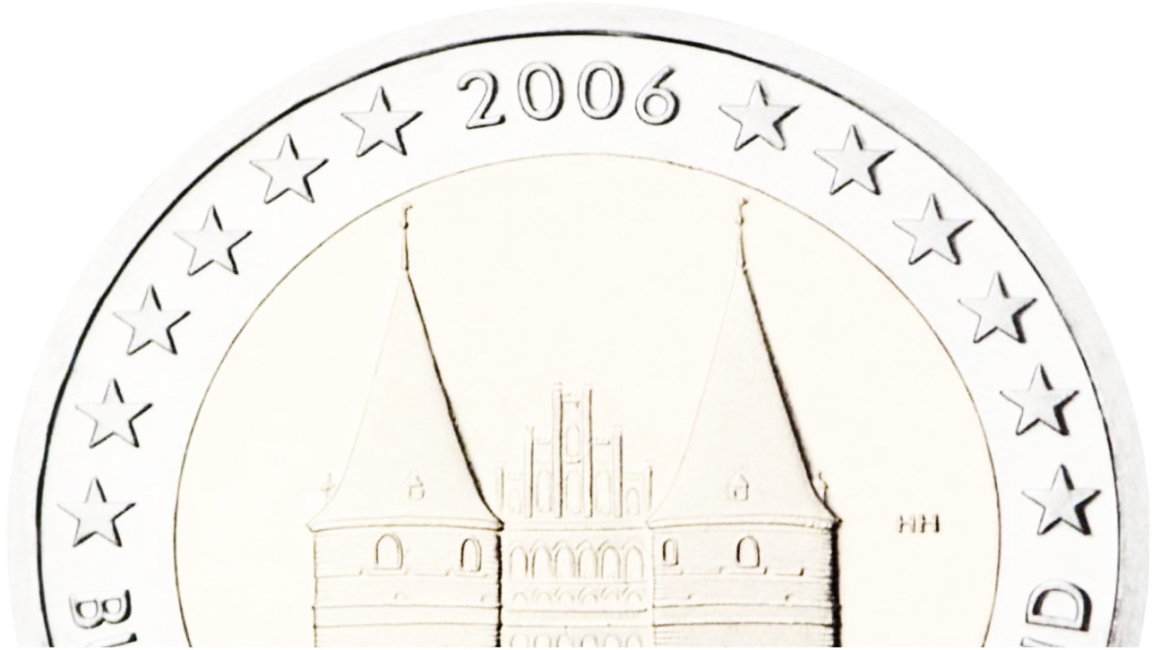 Osservando il rovescio della moneta, troviamo una caratteristica unica: la rappresentazione della mappa dell’Europa, attraversata da sei linee che uniscono le 12 stelle simbolo dell’Unione Europea. A sinistra, il numero 2 indica il valore nominale, mentre sul dritto della moneta troneggia una stupenda illustrazione della Porta di Holstentor. Ai lati, si vedono le sigle dell’autore e della Zecca, insieme alla dicitura “BUNDESREPUBLIK DEUTSCHLAND” e l’anno di conio, 2006, circondato da altre 12 stelle.