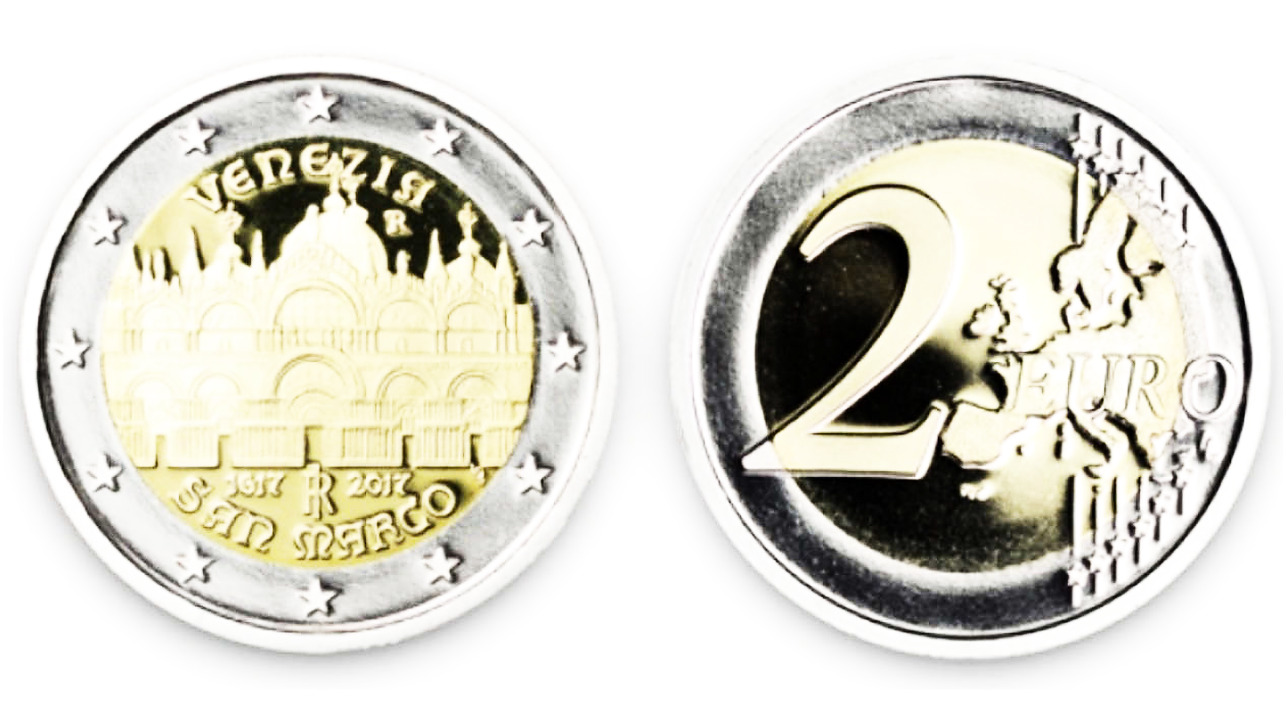 Questa moneta è identica per materiali, dimensioni e peso alle altre monete da 2 euro in circolazione in Europa. Tuttavia, il suo rovescio la rende unica. Incessantemente ammirata, la moneta presenta oltre alla Basilica, la scritta “Venezia” in caratteri speciali, insieme all’“R” della Zecca di Roma e la delicata firma dell’artista. Sono stati coniati 1,5 milioni di pezzi, con 1 milione e 460 mila di questi già messi in circolazione, rendendo l’occasione accessibile a tutti. Il valore di questa moneta è di 2 euro, ma speciali edizioni in Fior di Conio possono raggiungere un valore di mercato fino a 220 euro.